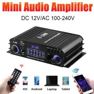 【Multiple Input & Multipurpose】– This home audio power amplifier with Bluetooth, RCA, MIC, SD,USB input, audio from external devices, such as CD, DVD, TV, PC, computers, tablets, notebooks, phones, MP3, and projectors with AV audio etc., mini size with FM faction, great for indoor/outdoor,party,teaching use.