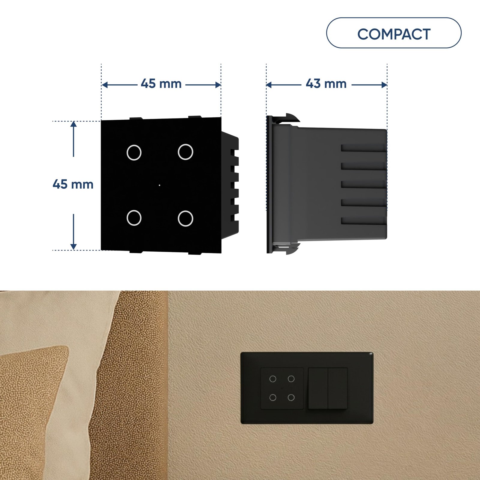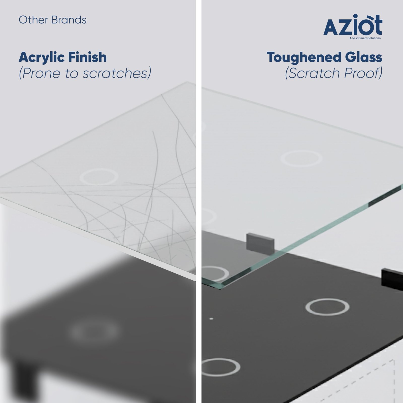 - Versatile Compatibility: The AZIOT Modular Touch Switch is designed to seamlessly fit into your existing home setup. With sizing equal to that of two traditional switches and compatibility with a range of plates and accessories, upgrading your home has never been easier.