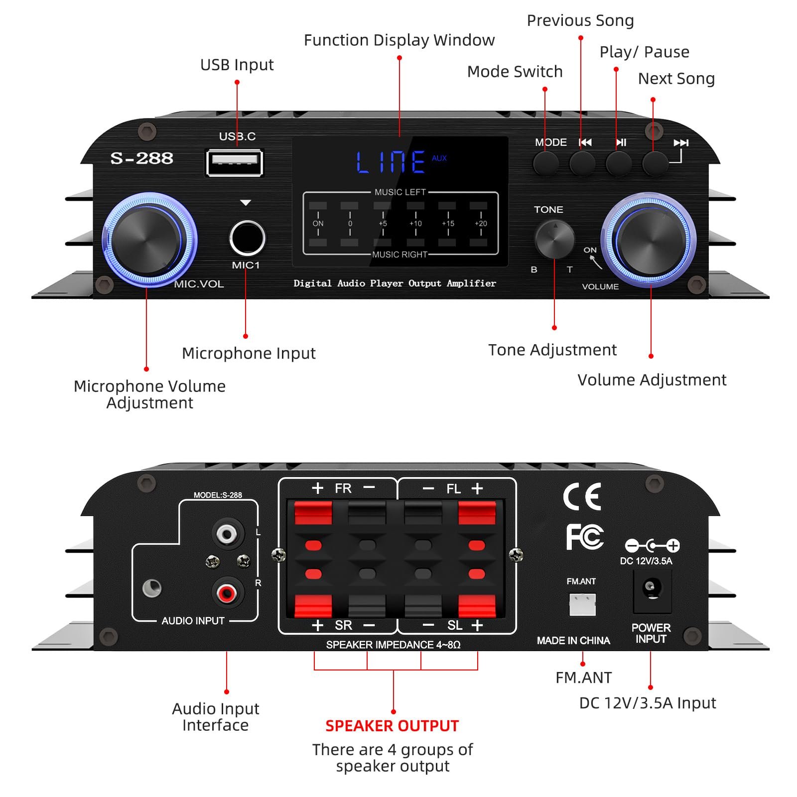 【Multiple Connectivity】– Latest Bluetooth 5.0 version that gives you a large operating range of 30ft/10m.(NOTE: Please keep the distance within 30ft/10m between the device and amplifier without any wall blocking. But if you are connecting whith TV or PC devices, please keep the distance within 15ft/5m. ) You can connect it with your music streaming devices like PC/mobile/laptop either with Bluetooth connection, 3.5mm AUX Cable Input. It also supports USB/ SD Card (FAT32 format only) /FM ANT. (NOTE 2: The frequency range of the FM reception is 87.5-108MHz.)