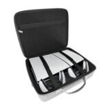 PSS Travel Bag for PS5 Slim Console and 2 Controller, Cary Cash for PS5 Slim Compatible, Waterproof EVA Hard Protective Bag with Handle Strap for PS5 Slim Accessories Only Bag (Grey)