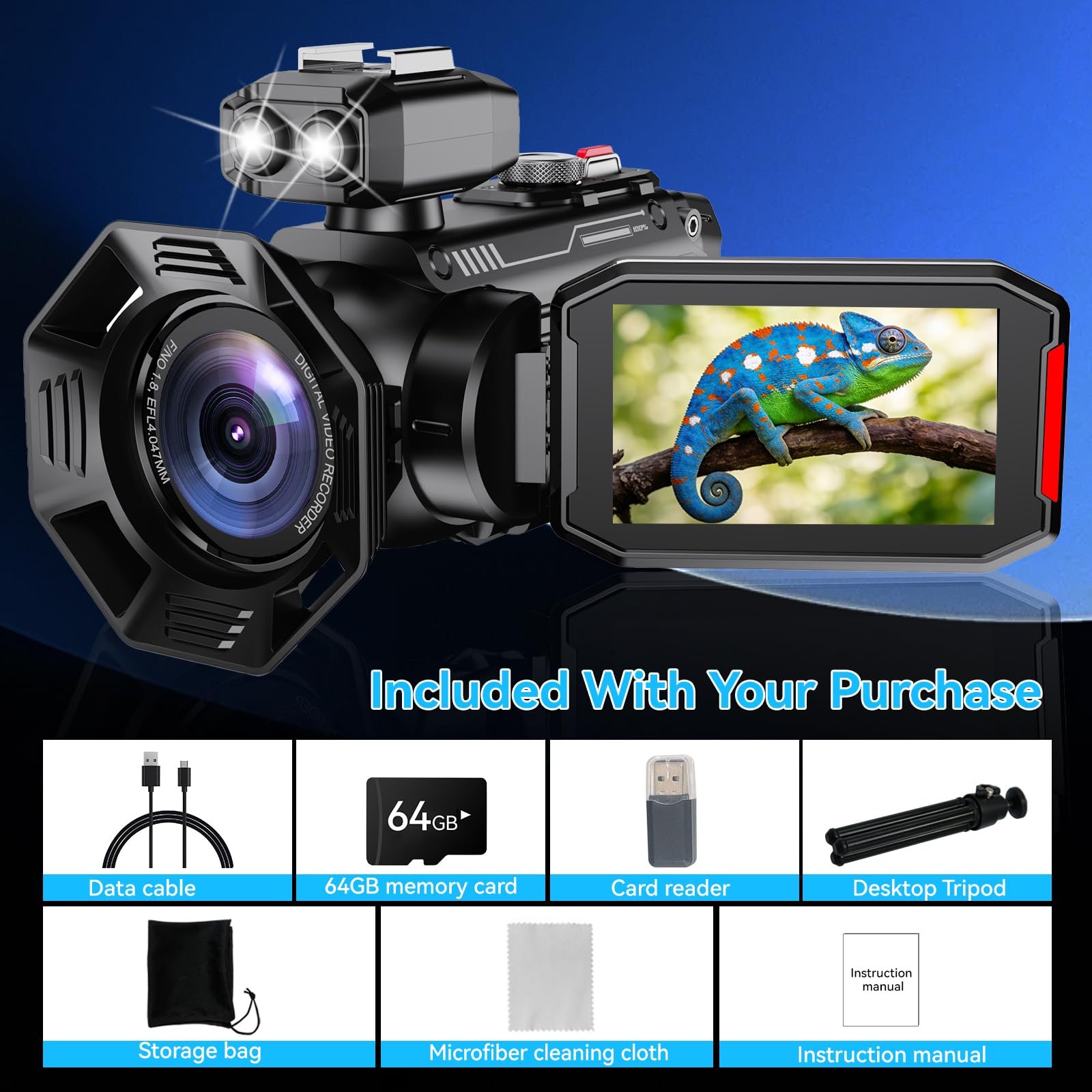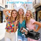 - Multi-Angle Shooting & LED Fill Light:The 3.0-inch flip screen rotates 270° for effortless framing at any angle. The built-in LED fill light provides soft illumination in low-light conditions, ensuring bright, natural-looking videos during nighttime or indoor shoots.