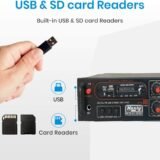 Details: Tech-lobby 2 Channel Stereo Amplifier with Big LED Display/Bluetooth/MIC Input/USB/SD Card Slot/FM Radio/AUX Input/Remote Control & Built-in Equalizer with Bass, Treble & Balance Control