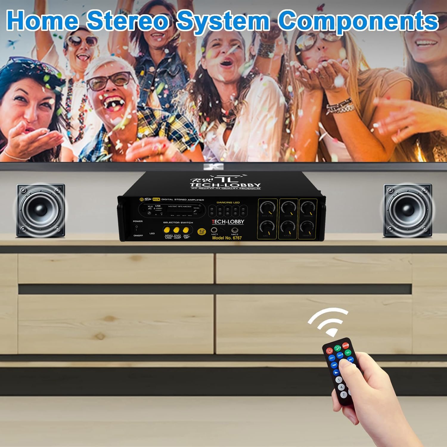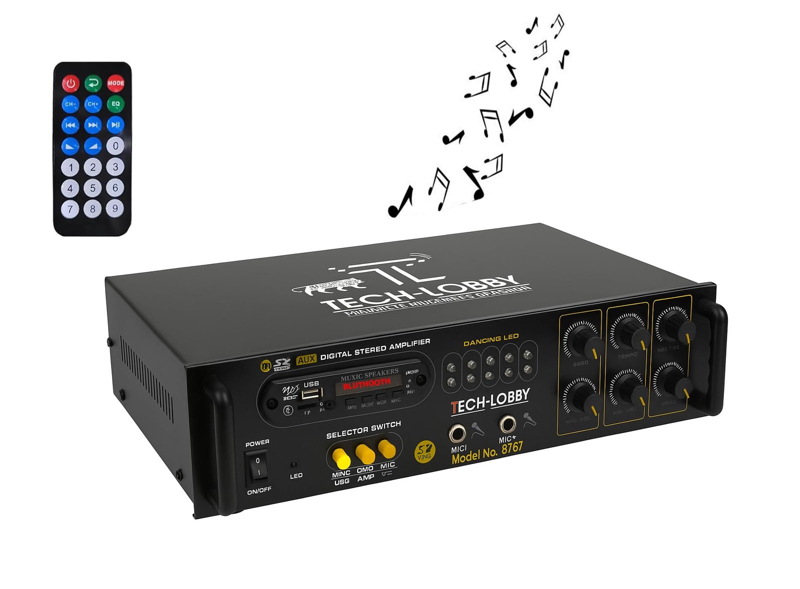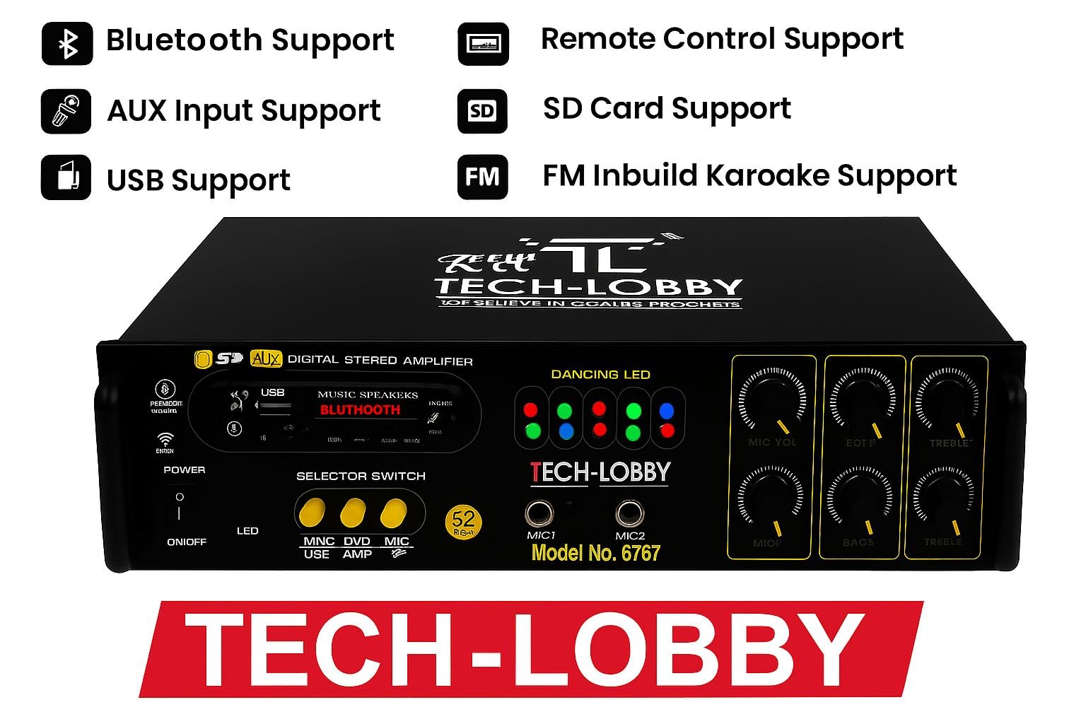 Tech-Unique 4 Channel 200 Watt Stereo Amplifier with Big LED Display/Bluetooth/2 MIC Input/USB/SD Card Slot/FM Radio/AUX Input/Remote Control & Built-in Equalizer with Bass, Treble & Balance Control