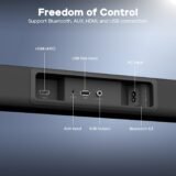 • Multiple Connection Options: The Soundbar supports Bluetooth 5.3, AUX, HDMI, and USB, providing flexible connectivity for your devices. Whether it’s your TV or smartphone, enjoy seamless audio streaming and an effortless entertainment experience.